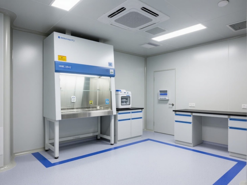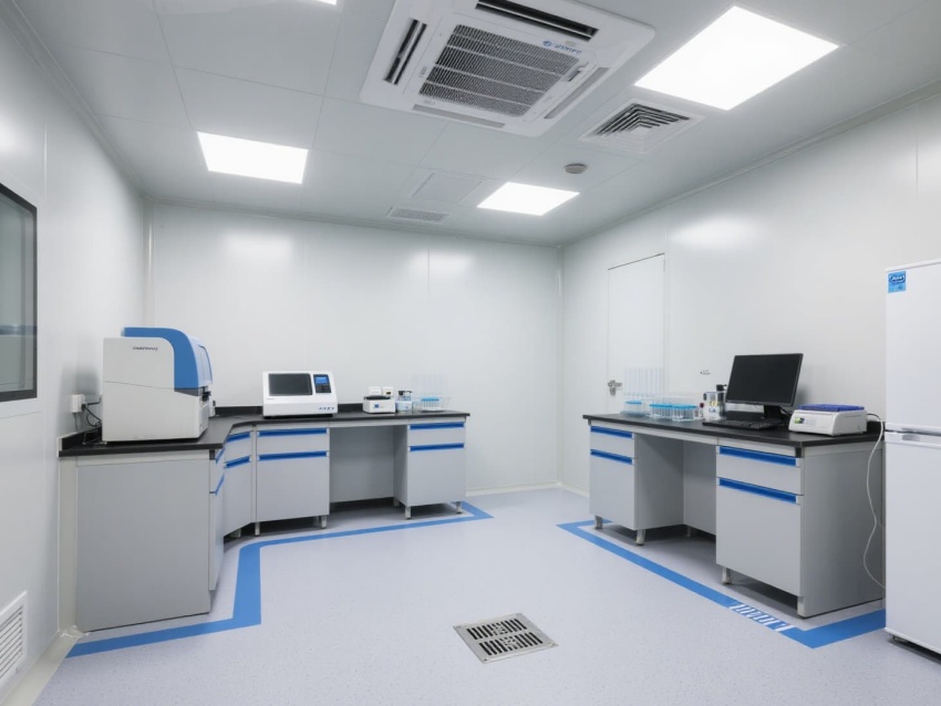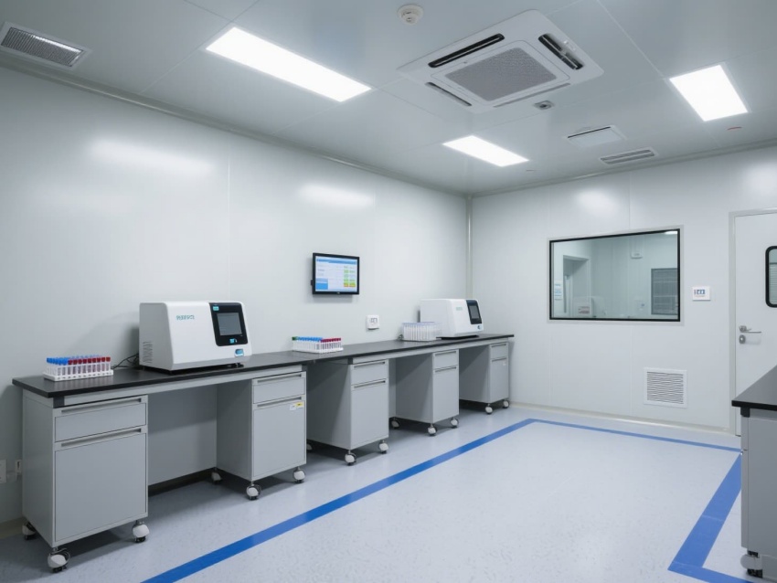 頂部高效過濾器與定向氣流系統(tǒng)維持每小時12-15次空氣置換,確保潔凈度達標。墻面嵌入式消毒裝置與紫外燈系統(tǒng),可實現(xiàn)每日全方位消殺。實驗區(qū)配備負壓通風柜與生物安全柜,臺面采用耐腐蝕環(huán)氧樹脂材質(zhì),適配PCR反應(yīng)的精密操作。