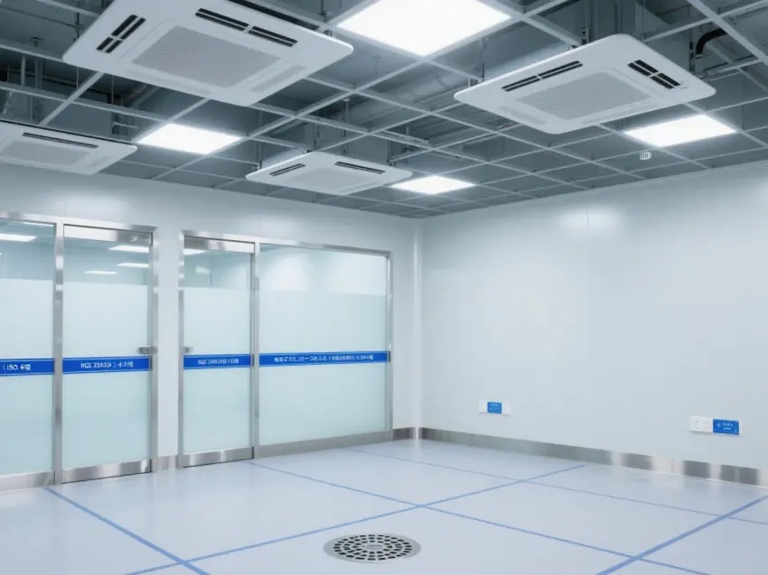 車間的天花板上安裝了多個方形的照明燈,提供充足的光線,同時還有通風(fēng)設(shè)備,確保空氣流通,保持車間內(nèi)的空氣潔凈度達到萬級標準。墻壁上有一些玻璃窗戶和門,便于觀察內(nèi)部情況。