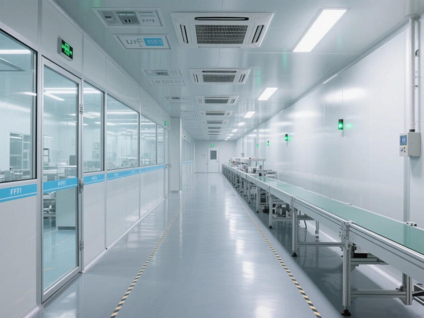生產線配備全自動晶圓傳送機械臂、激光焊接設備,透明防塵罩與實時粒子計數器確保工藝穩定性。走廊設置防靜電地板與人員凈化通道,風淋時間嚴格控制在30秒,全方位滿足微電子元件的超高潔凈生產需求。