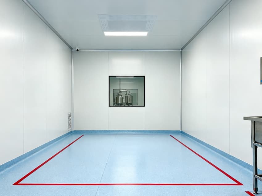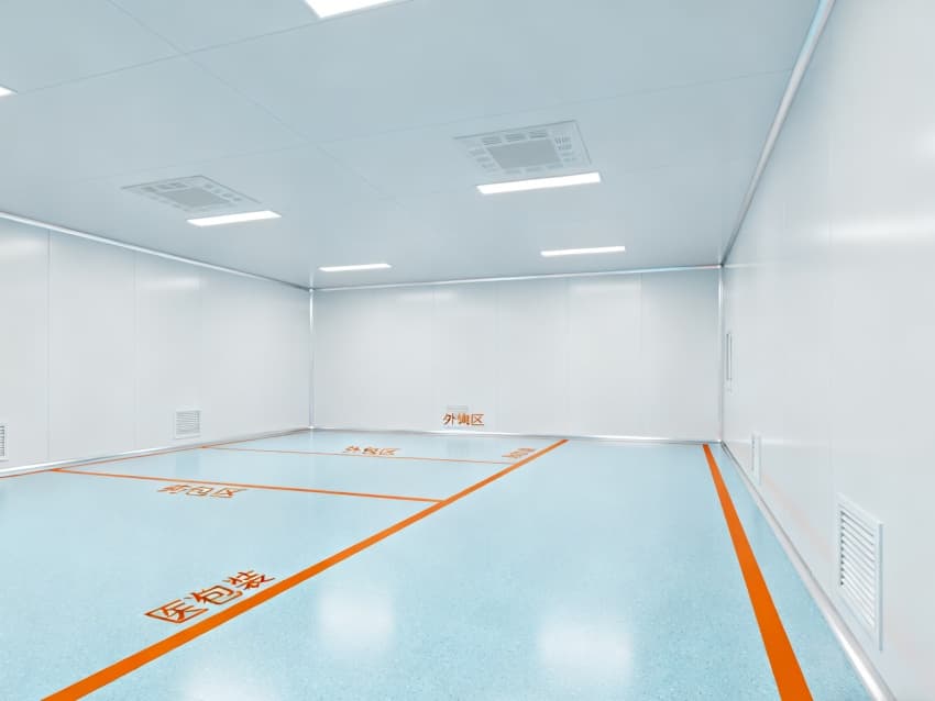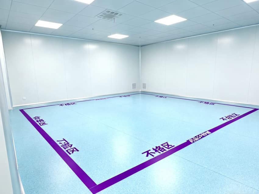車間整體風(fēng)格潔凈統(tǒng)一,地面采用淺藍色耐腐抗菌環(huán)氧材質(zhì),無縫拼接工藝杜絕衛(wèi)生死角,耐消毒藥劑侵蝕且易清潔;四周白色抗菌墻壁經(jīng)納米涂層處理,粉塵附著率極低,配合頂部高效空氣過濾系統(tǒng),穩(wěn)定維持萬級潔凈度,契合醫(yī)藥用品生產(chǎn)對無菌環(huán)境的嚴苛要求。