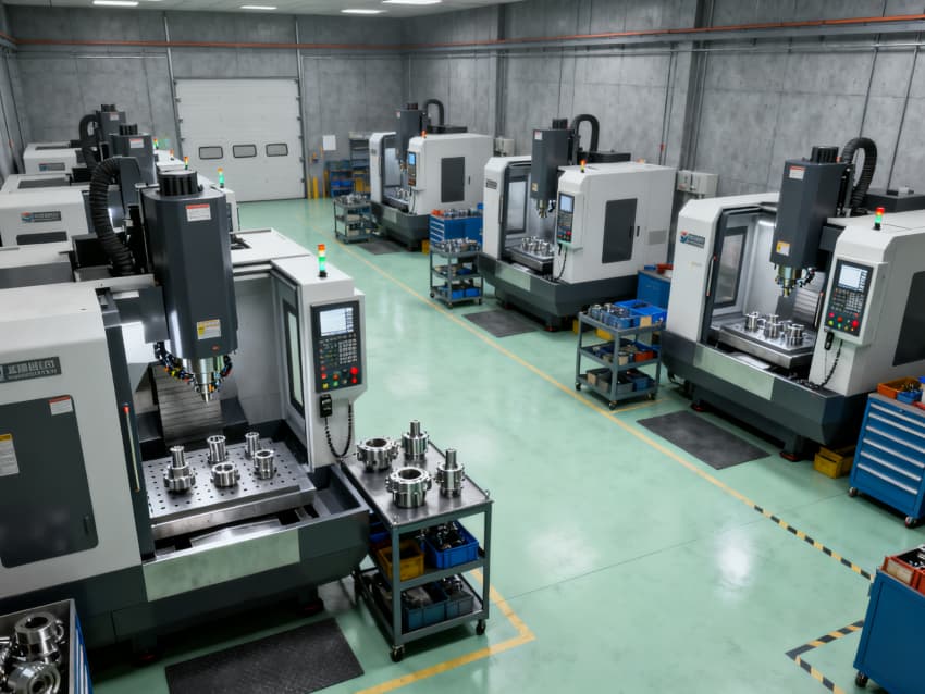 全車間統一預留標準化電源接口、壓縮空氣管路及 coolant 回收通道,層高5米適配各類大型CNC設備安裝調試。地面隱形標識清晰劃分加工區、通道區及安全區域,墻面張貼設備操作規范預留位。整體設計兼顧實用性與安全性,為精密CNC加工提供穩定、高效的生產環境,助力保障零件加工精度與生產效率。