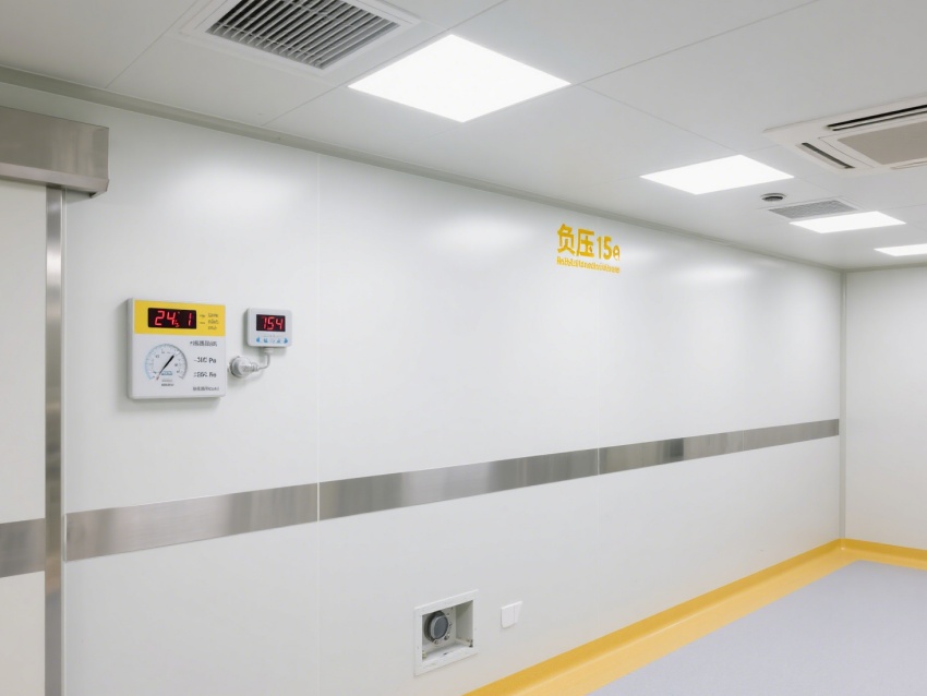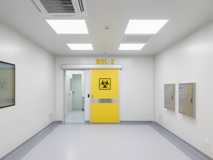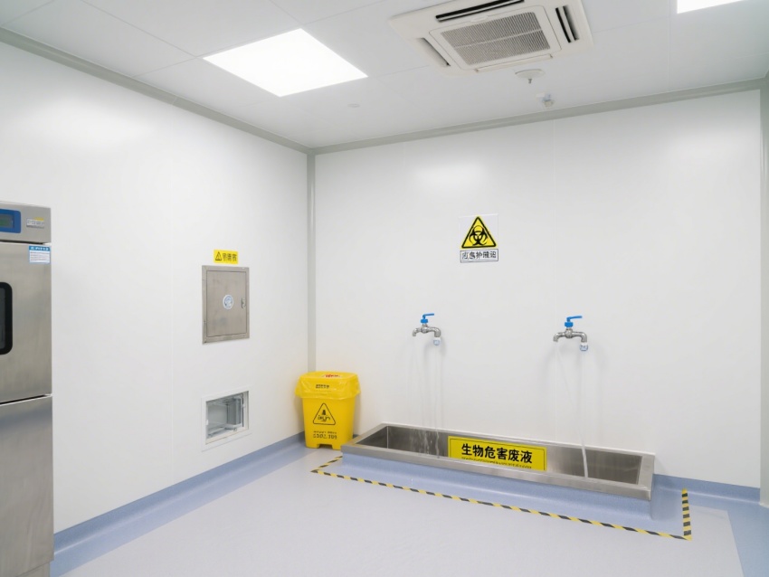 內(nèi)部設(shè)施專業(yè)且完善,生物安全柜為實驗操作提供無菌防護;各類氣路、水路接口布局規(guī)范,滿足檢測過程的資源供應;配備應急沖眼設(shè)施與生物危害廢液處理區(qū),保障實驗安全。空間設(shè)計注重潔凈與防護,墻面、地面為無縫抗菌材質(zhì),便于消毒滅菌,黃色警示線清晰劃分功能區(qū)域,各類監(jiān)控儀表實時顯示溫濕度、壓差等關(guān)鍵參數(shù),確保實驗環(huán)境穩(wěn)定可控。