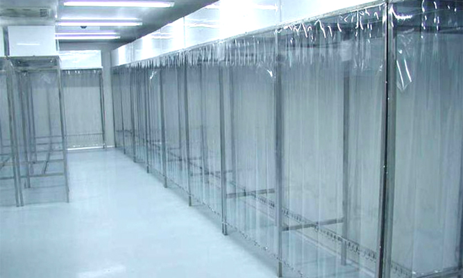 2、防靜電垂簾:0.3mm厚網(wǎng)格(韓國(guó)進(jìn)口)防靜電效果好、透明度高、網(wǎng)格清晰、柔韌度好、不變形、不易老化;防塵除靜電。